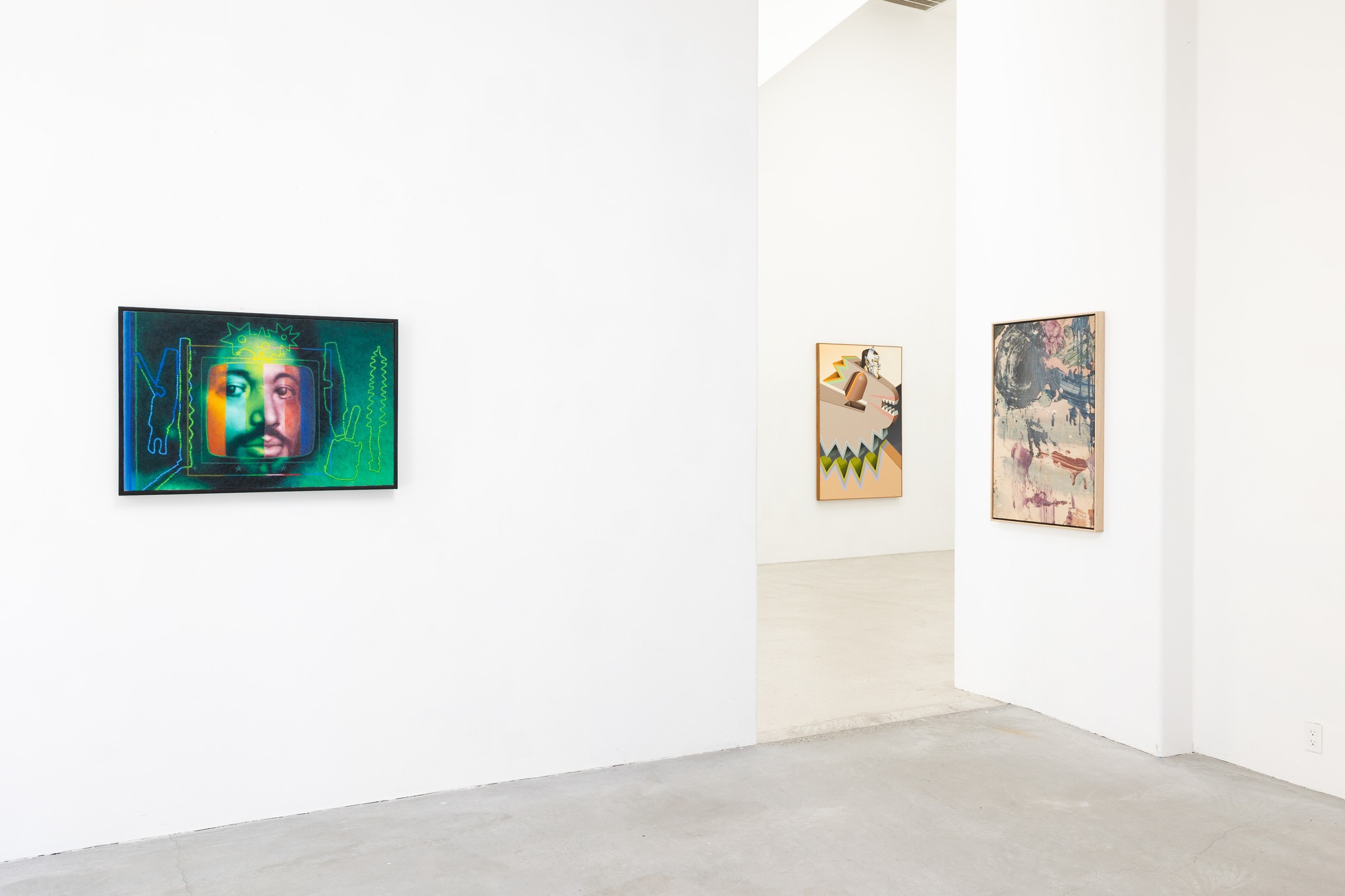 The exhibition unfolds across two rooms, each steadied by a single figurative painting. In the first room, Robert Lostutter presents a brightly colored, enigmatic male figure wearing a metal head cage, his body verging on futuristic robotics—a striking exploration of humanity and technological hybridity. In the second room, Ed Paschke’s portrait of Juan de Pareja bursts with vibrant color and modernity, offering a vividly contemporary interpretation that contrasts with Goya’s historical version in the Met’s collection. Surrounding these works are abstract paintings and sculptures that enter into a subtle dialogue with the figurative anchors. This deliberate interruption of abstraction challenges traditional survey expectations, revealing unexpected connections between form, psyche, and perception.