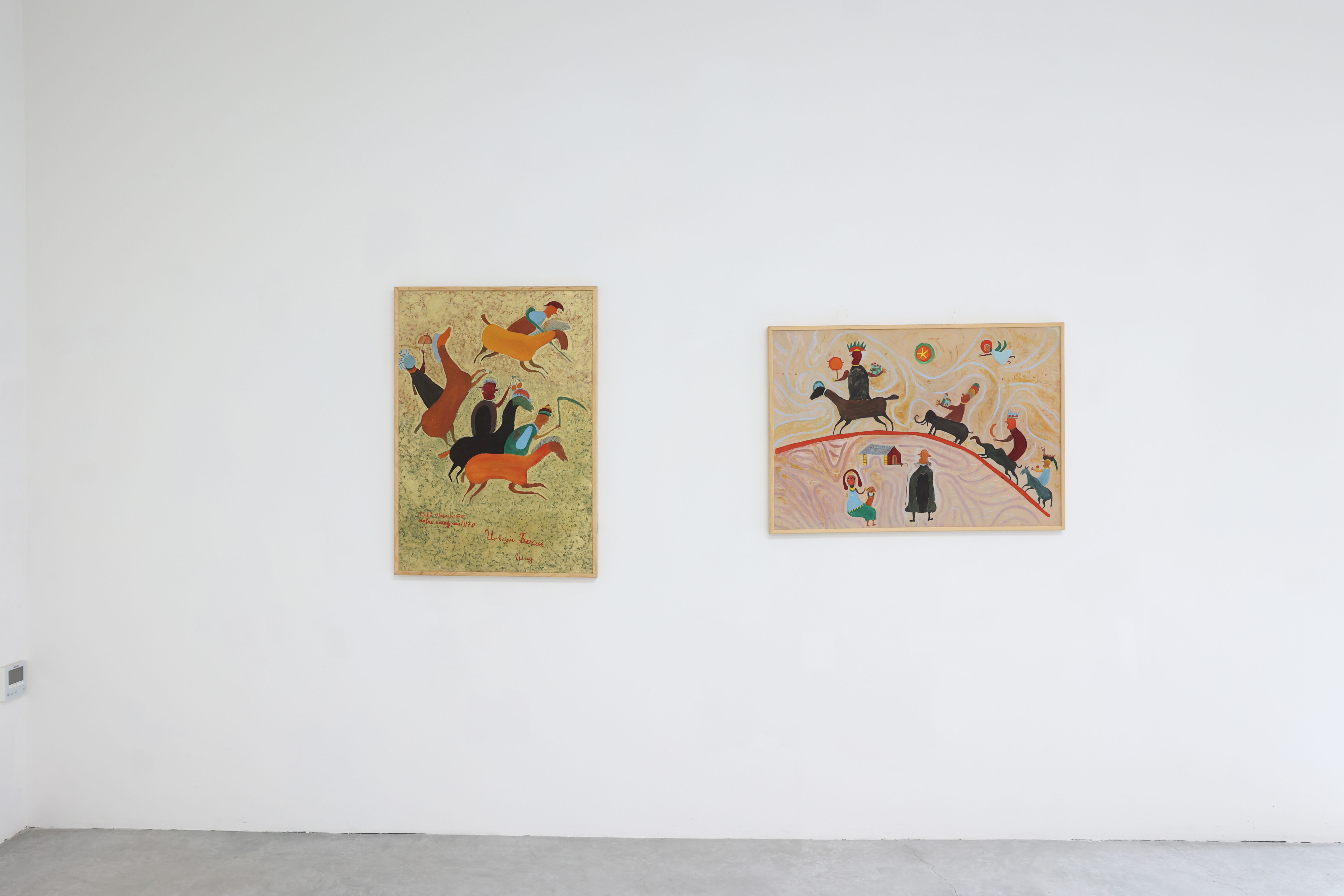 Biblical stories, myths, and apocalyptic scenes recur as tools for thinking through morality, responsibility, and the human condition rather than as expressions of faith. The scholar Biljana Tomić traced the archetypal iconography of Ilija’s art to the folk literature he constantly read, a broad area of inspiration that stretched from the creation of the world to the Apocalypse, from the Battle of Kosovo to the legend of the Argonauts. Biblical stories, Byzantine icons, medieval frescoes, and oral folk traditions deeply informed his approach to image and surface, particularly his use of gold. The works are not expressions of his faith, rather they were his only accessible frameworks to display the painter’s feelings.