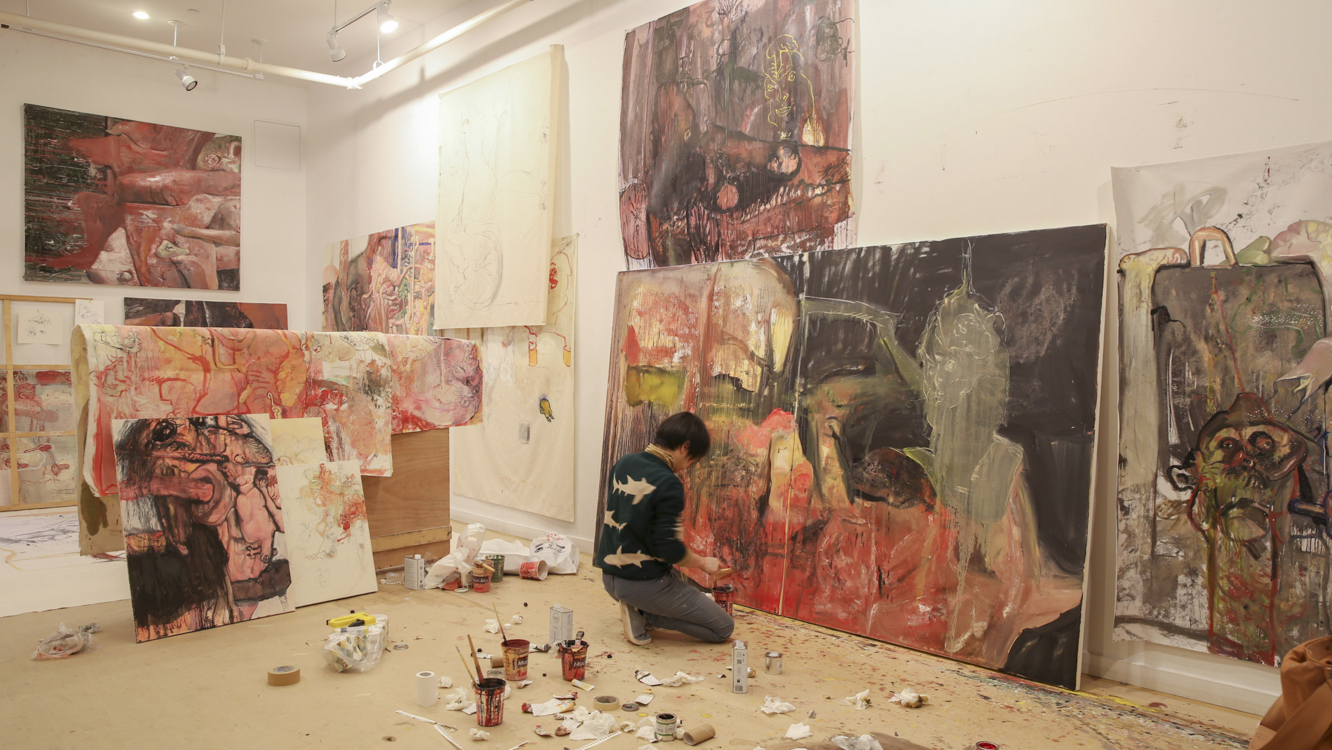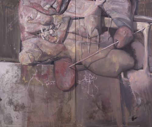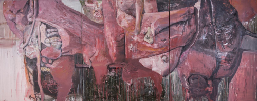 Keunmin Lee paints uninhibitedly. His figurations slither, slide, and writhe from his paintbrush and onto the canvas with a nihilistic countenance looking to plot their nefarious liberation. They are betrayed, though, by their warm, nascent composition and embryonic posturing, radiate an earthly vulnerability. Keunmin has detained the wildly elusive and ephemeral demons of creativity into tarpaulin-like captivity, bringing them into leveled focus. Do I Wake or Do I Sleep? aligns Keunmin in direct confrontation with his manifested make and muse.
