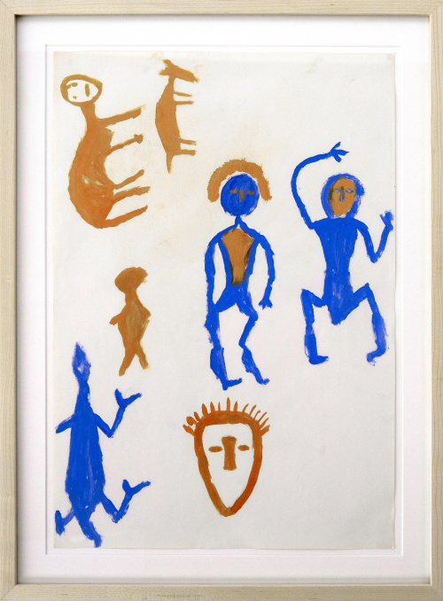These Amazonian drawings come from anthropologist Dr. Nairo Garcia Pinheiro via a private collection. While Dr. Pinheiro was conducting research on uncontacted tribes at the University of Sao Paulo, he decided to furnish the people he met with art materials to stimulate them creatively and gain a deeper insight into their culture, building off of a practice established years earlier by fellow faculty member Dr. Vera Penteado Coelho. This collection highlights the Xikrin, Yanomami, Mehinaku, and Bororó Amazonian tribes, and the themes depicted span geometric patterns, anthropomorphized creatures, everyday objects, maternity scenes, and beyond. The unique cultural sensibilities that are directly related to the Amazon region provide a continuity for these works, as well as an insight into their unique mythologies and world views.