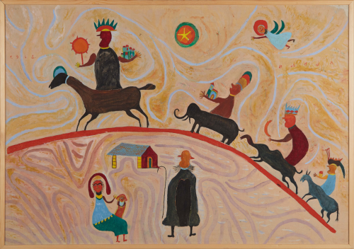 Critics have reached for many labels—naive avant-garde, naive expressionism, art brut, pure realism—and none have fit. Long recognized in Europe, Ilija is less well known in the United States. His work has been held in major public and private collections across Europe and exhibited in Basel, Düsseldorf, Rotterdam, Paris, Tangiers, Hamburg, Linz, Bratislava, Amsterdam, Munich, Genoa, and Novi Sad, among others. The art historian Gregor Gamulin asked the essential question: “What is he transmitting to us and how can these forms move as though growing before our very eyes, turning in space and multiplying—from the other side of the possible, or more exactly, from the eternal realm of the impossible?”