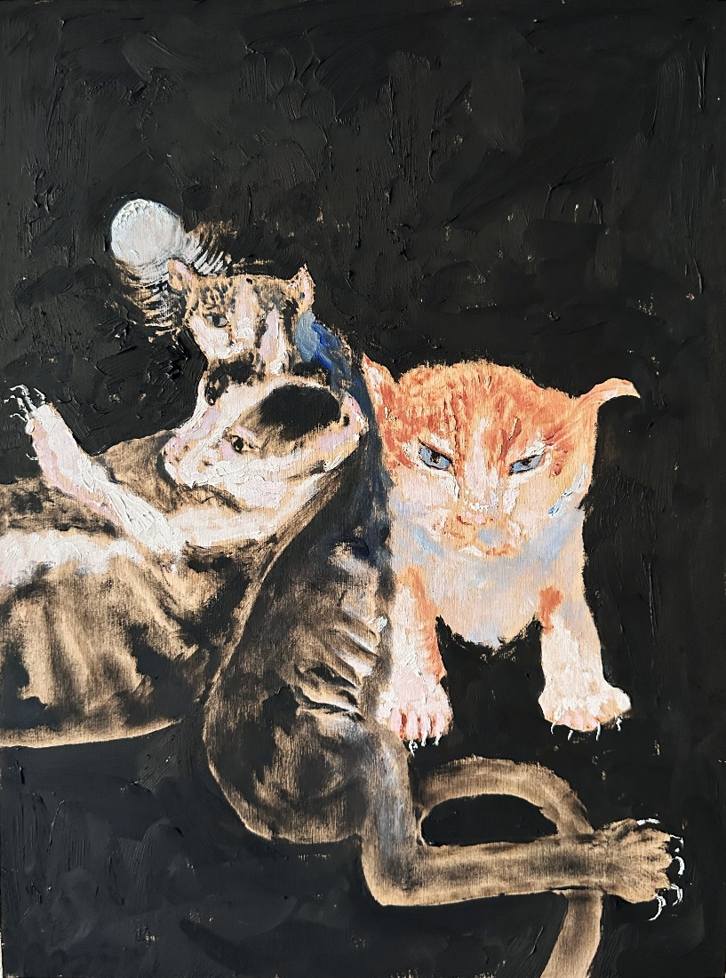 An installation consisting of 3 chromogenic prints, one gelatin silver print, and one text panel, ea